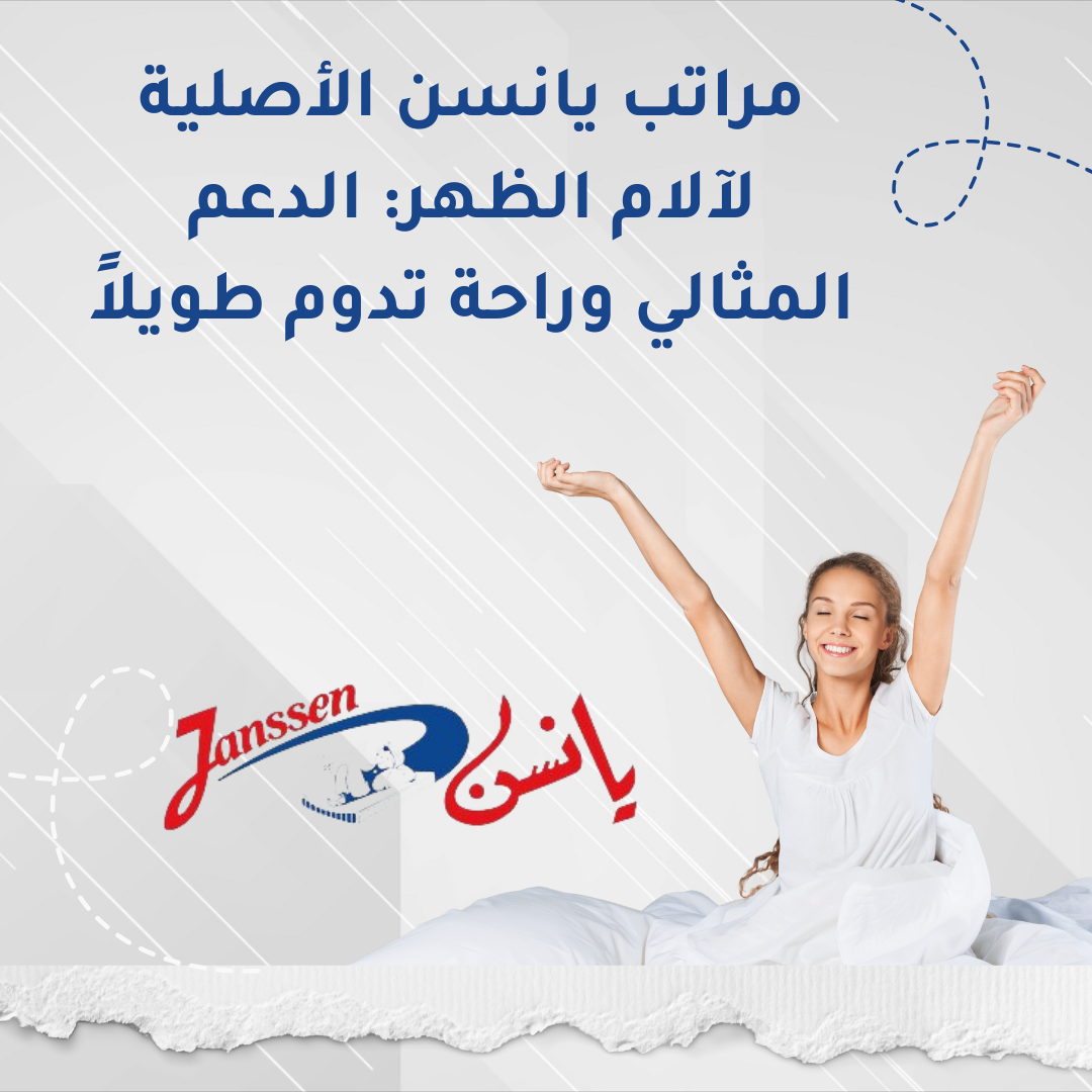 إذا كنت تعاني من آلام الظهر وتبحث عن حل فعّال للتخفيف منها، فإن مراتب يانسن الأصلية لآلام الظهر هي الاختيار الأمثل. صُممت هذه المراتب لتوفير الدعم المتكامل للعمود الفقري، وتقليل الضغط على الفقرات، مما يمنحك راحة عميقة ونوماً صحياً. بفضل تقنيات التصنيع الحديثة والمواد عالية الجودة، تضمن يانسن أن تحصل على تجربة نوم متوازنة ومريحة تساعد جسمك على الاسترخاء والشفاء.